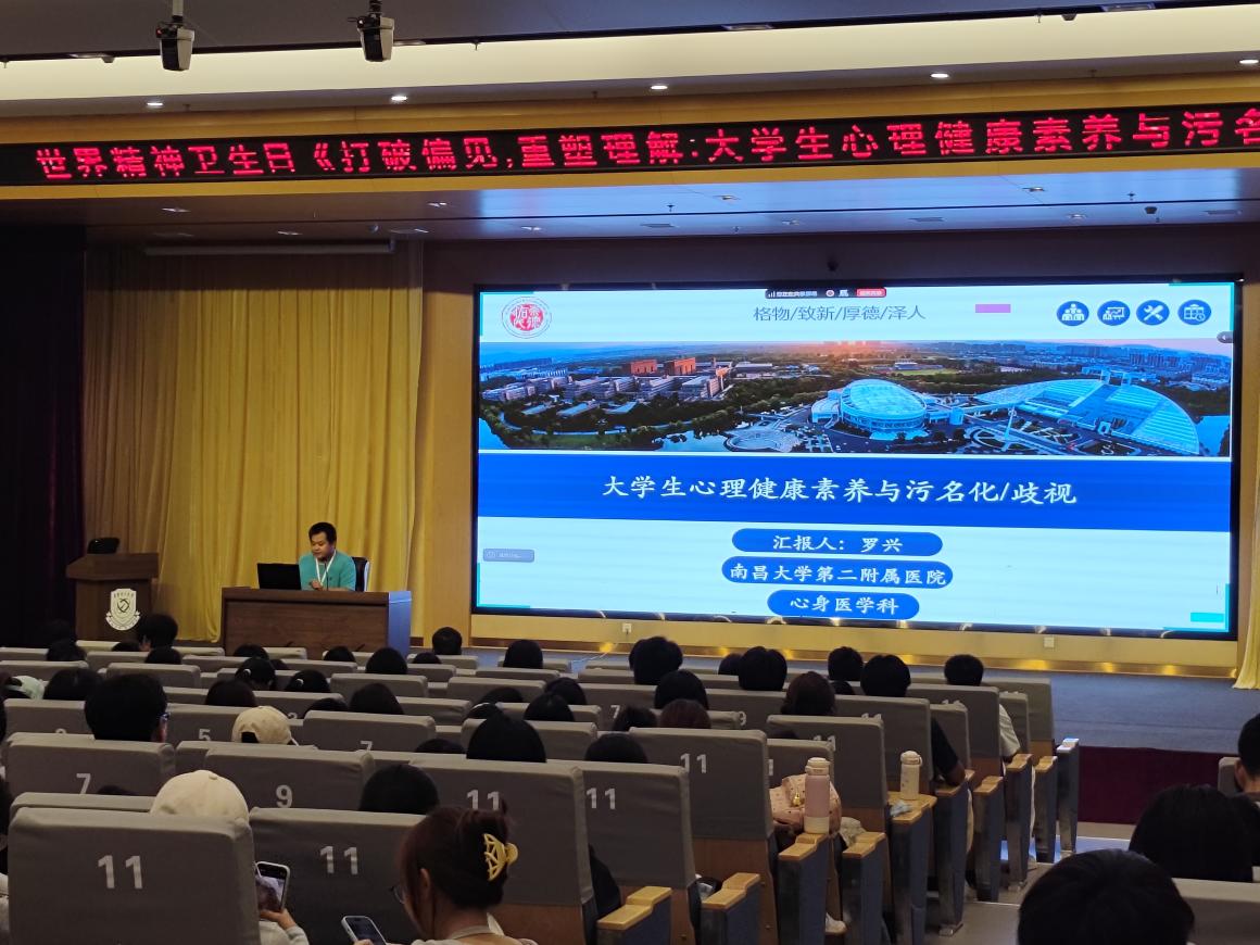 值此“10·10”世界精神卫生日之际,学生工作处(心理咨询中心)于10月14日邀请南昌大学第二附属医院心身医学科罗兴医生开展“大学生心理健康素质与污名化”讲座,我校300余名学生参加此次讲座。
